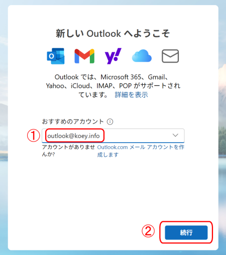 ※既存のアカウントを修正する場合はアカウントの管理より修正設定が可能です。