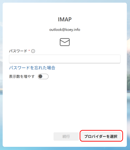 ②「SMTPパスワード」の欄にパスワードを入力します。(自動で入力されている場合は③へ)